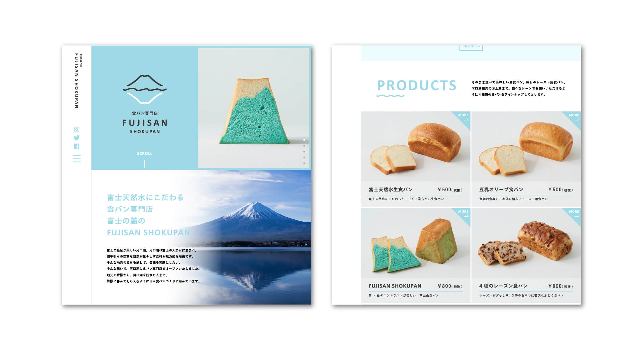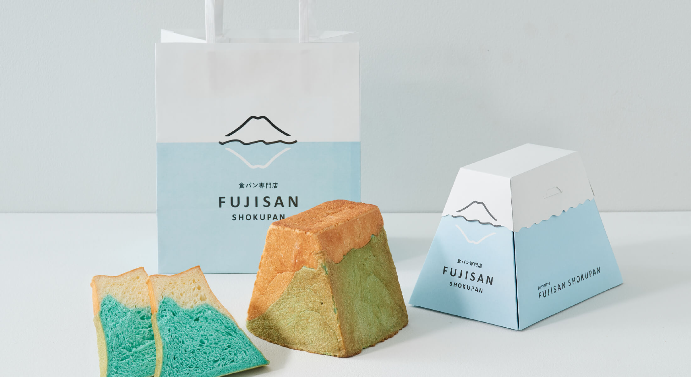 食パン専門店 FUJISAN SHOKUPANは、富士山からの豊かな水と山梨県産にこだわった素材を使用した、河口湖の高級食パン専門店。名前のFUJISANをキーワードにロゴ・ツール・店舗などのブランディング・デザインを統括。